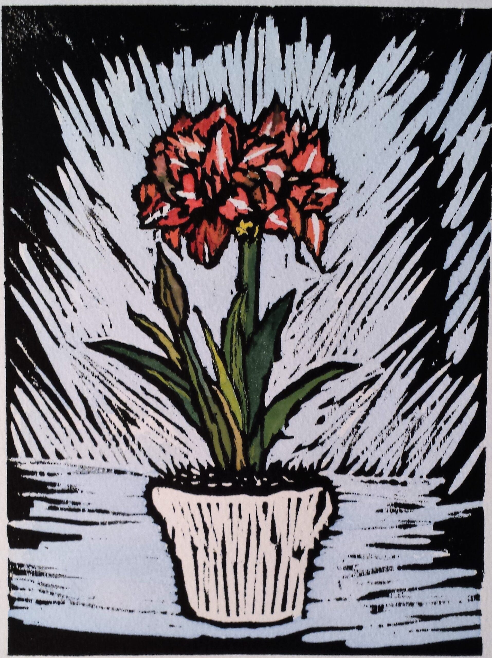 HAND COLORED WOODCUT / 8 ” x 6 “. CLICK IMAGE TO ENLARGE
