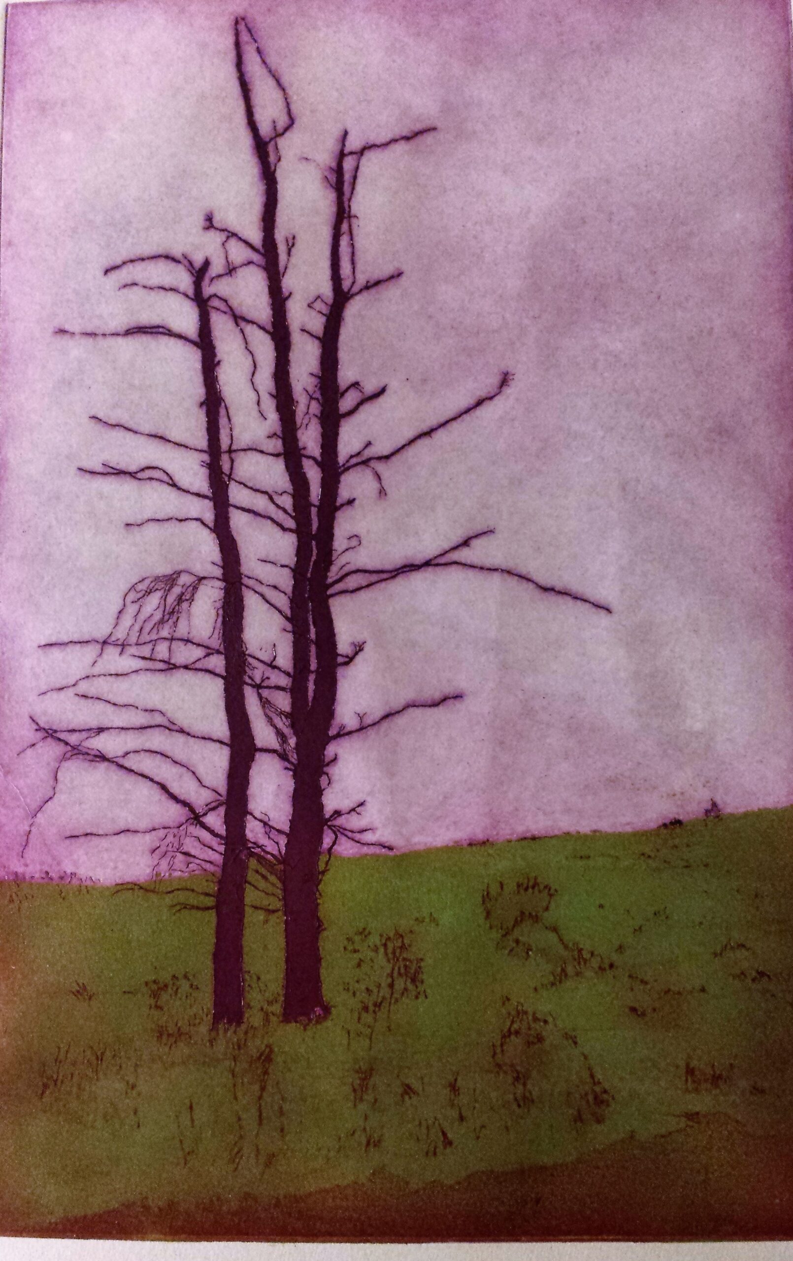 Etching, Aquatint, Rolled Color. Two Trees.